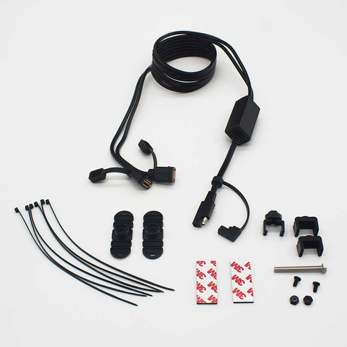 This 65" SAE to 2 USB Port Split Cable gives you the freedom to charge faster and smarter with its intelligent electronics device charging tech. 12-24V input voltage decreases your wait time, as each USB port can output up to 5V 3A QC 3.0. The split cables let you access the USB ports in two places (for example one on handlebar and one for rider). Plus, its rugged build and mounting hardware make it ideal for those with a power sports lifestyle. Dare to charge the difference! Adapter for USB to USBC sold separately.